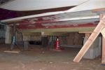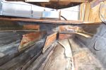 I got the gas tank section removed, I used a laser level to set up the jig under the hull to assure it being true, there was a 1/4 inch dip in the port side about the middle of the hull, it's certainly strait now. I removed the center and the port stringer, the center came out fairly easy but the port stringer removal was a Bear, the back half of it was bonded like new.