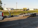 I didn't get to work on the GT-160 today, I took a 420 mile road trip up into Kansas to close the deal on a trailer for the "Fox Den" it's a 28ft galvanized tri-axle with 4000 pound axles, the surge brakes have been converted to electric brakes, but the reciever was not changed out, it won't take much work to make it fir the Fox Den.