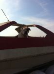 Yea, the scimitar that sits outside of Lamont belongs to Marvin Hembree, he just bought it this summer from Brian Kugle, the owner of Kugle booms, just outside of tonkawa, next to the interstate. It is a pretty sharp boat too. That is Sadie, yep,she is an American bulldog. Chad, what are you going to have Red do to you're boat?