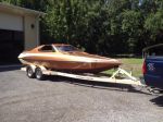 As we finally finished my Scimitar I have been boating on our lake which is Dickerson Lake located in Stanton, Michigan.  It's a very small lake ...about 225 acres only and hard to "stretch the legs" of this boat.  Several weekends ago we took "her" to the Muskegon River in Michigan near the Hardy Dam  to try to get some hours on the engine.  Got to run her pretty good and could not believe the looks and people coming over to see the boat.  Was a great day of boating.   Over Labor Day weekend we will be at our cottage once again on Dickerson Lake.   Red...thanks for all of your help along the way on the rebuild!